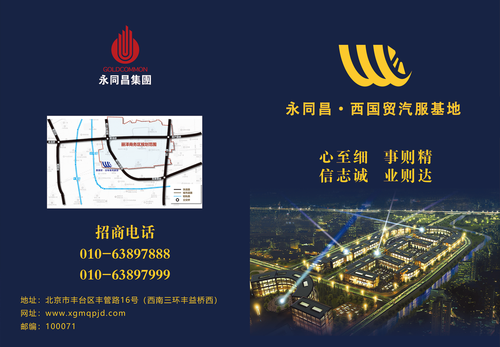 北京永同昌·西國貿汽服基地是永同昌集團的重點產業之一,屬于北京市豐臺區麗澤商務區核心項目。目前入駐商戶逾千家。業務范圍包括整車銷售、汽車改裝、汽車維修、汽車輪胎、汽車配件、汽車電子、裝飾用品等多個領域,品種、品牌、車系、規格齊全,基本涵蓋了中國公路上行駛的所有車型?;負碛邪瞬控浱?、二十部自動扶梯可以無障礙輕松運送貨物至二、三層,能夠為廣大采購商、消費者提供全面完善的售前、售中、售后服務。